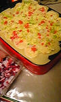 生地を流しタコを入れ、キャベツ、紅しょうが、チーズ、天かすを入れる。