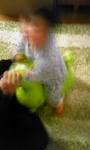 画像、何が何だかわからないけど、友達のTちゃんがくれたロディで遊ぶ息子。