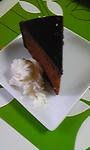 どっしりとしたスポンジケーキに分厚くコーティングされたチョコレートの下には、甘酸っぱいアプリコットジャム。