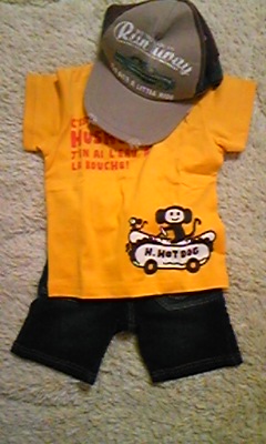 そして届いたのがこのやんちゃな上下セット&帽子。