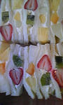 イチゴやメロンやマンゴーがいっぱいに入ったフルーツサンド。