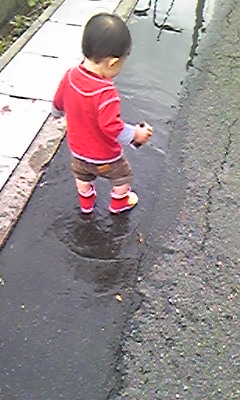 子供が、水たまりが大好きというのは噂に聞いていた。