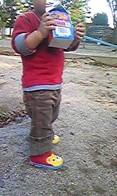 今日はこんな事もあろうかと、前に買ってもらった長靴を履かせている。