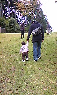 息子がとても歩きたそうだったので、お父さんと手をつないでお散歩。