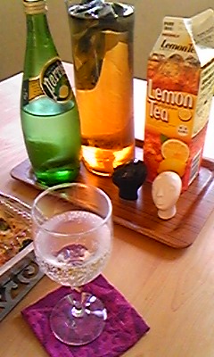 ドリンクは、気分だけでもシャンパンっぽく、って事で、炭酸水を頂く