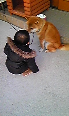 散歩の途中で近所のワンちゃんと。