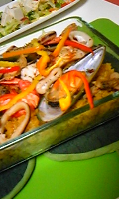 今日の晩御飯はパエリア。