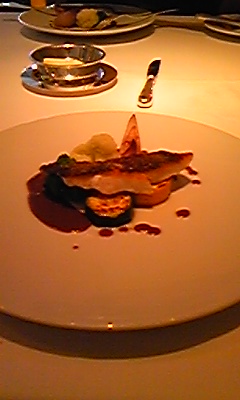 左は魚料理。金目鯛のポワレにグリルした野菜を添えて。