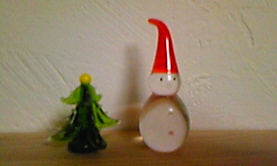ウチにはツリーがないので、小さなガラス細工の雪ダルマとツリーを出してみた。